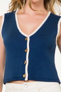 Sleeveless Bow Button Knit Top